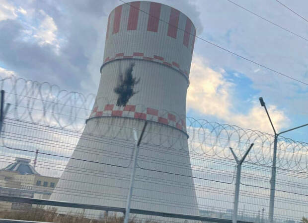 Минувшей ночью беспилотник ВСУ влетел в градирню действующего энергоблока № 6 атомной электростанции.